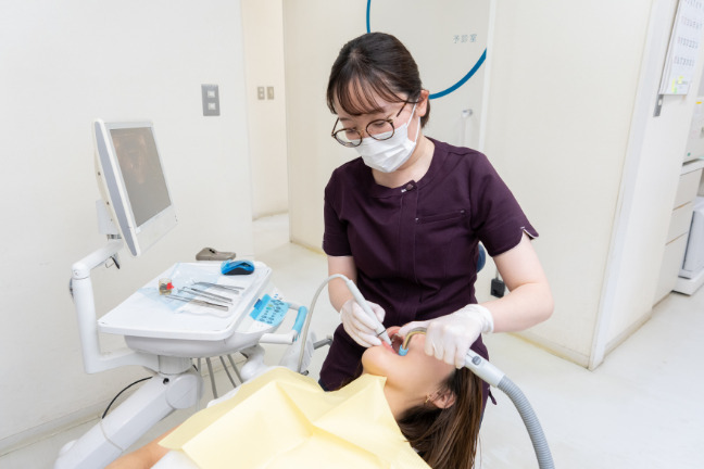 当院の歯科医師と歯科衛生士など医療従事者は、院内だけでなく外部の各種トレーニングを受講して、患者様に適切な予防治療をご提供できるよう努めており、歯垢や歯石の除去を行う際は、お声がけをしながら治療を行ったり、優しく丁寧な施術で痛みの少ない治療を心がけています。